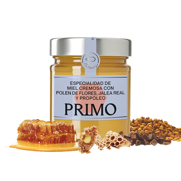 Ingredientes: 93% de miel cremosa, 3% de polen de flores, 2% de jalea real y 2% de propóleo